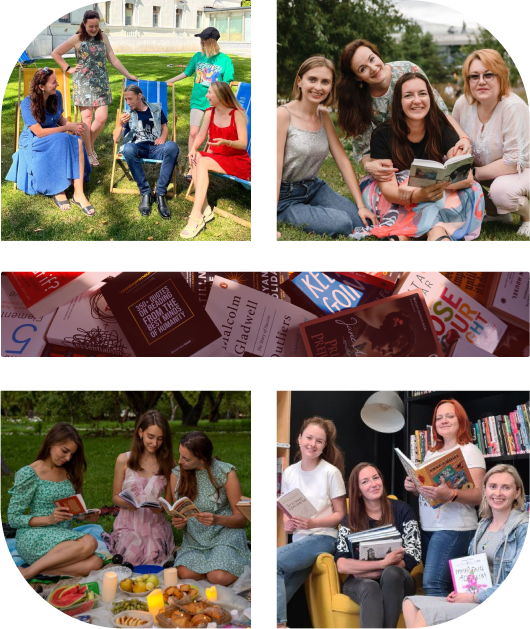 Клуб - это сообщество единомышленников, место, где мы обсуждаем книги, встречаемся с писателями, участвуем в квизах, ходим в театры, посещаем музеи и усадьбы.